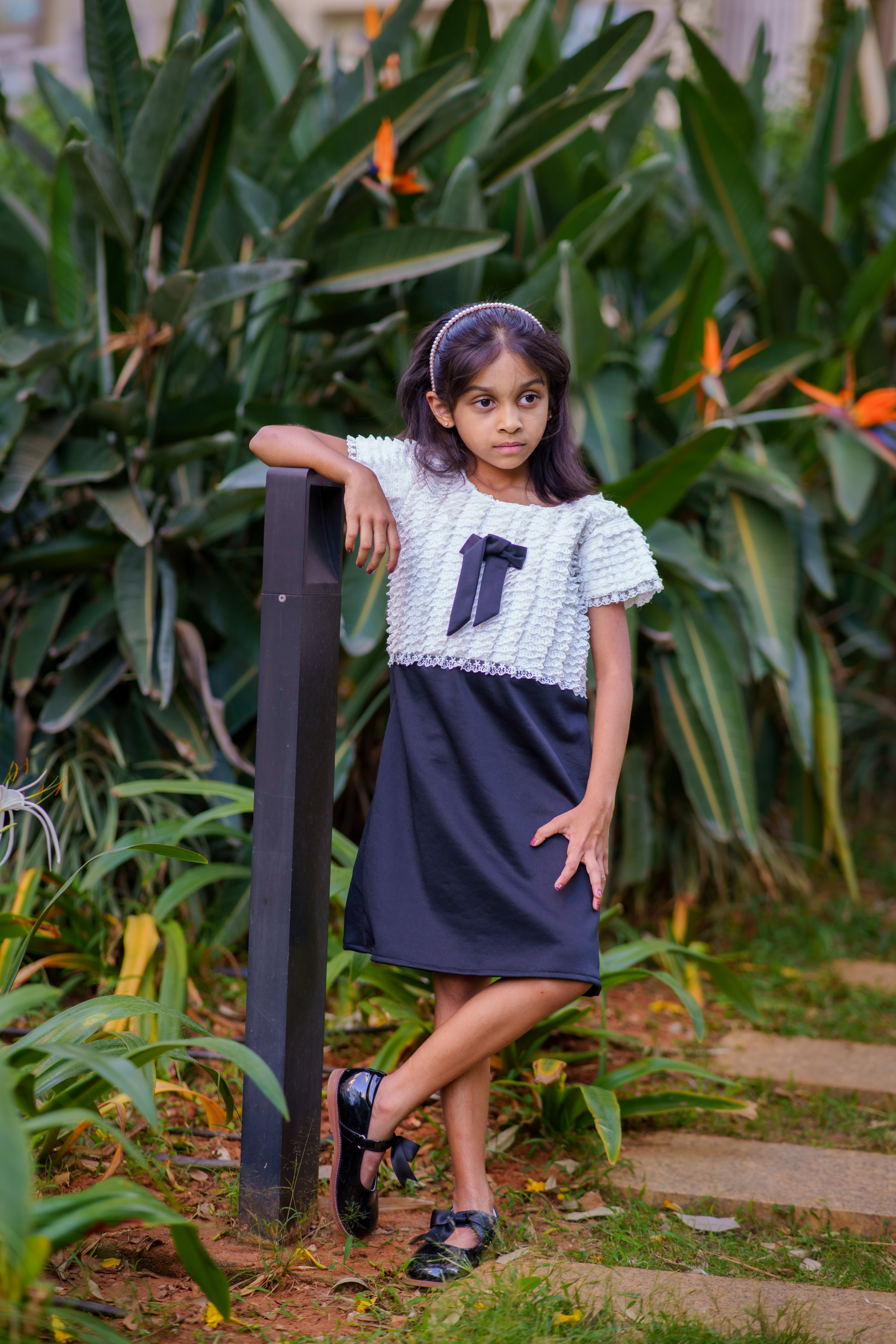 Step into style with this lycra dress with cap sleeves. lace detailing on the bodice, while the tie-on bow creates a sweet and playful look. The jewel shape neck keeps it chic and sophisticated.