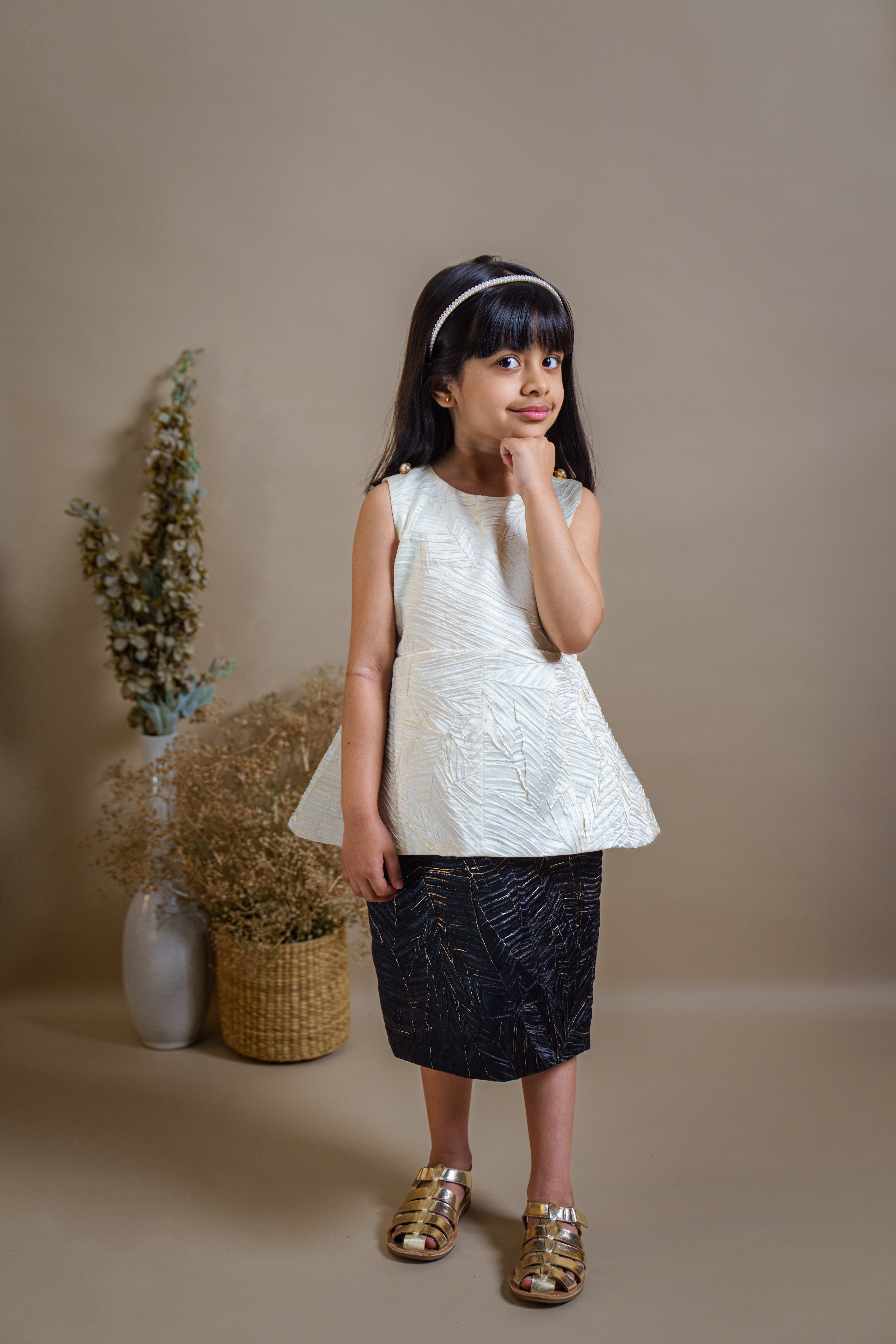 Illusion of a set, the elegance of a dress. Fall for the finesse of this brocade one-piece. Designed to look like a perfectly paired skirt and top, it's accented with delicate pearl buttons, adding a touch of refined glamour.