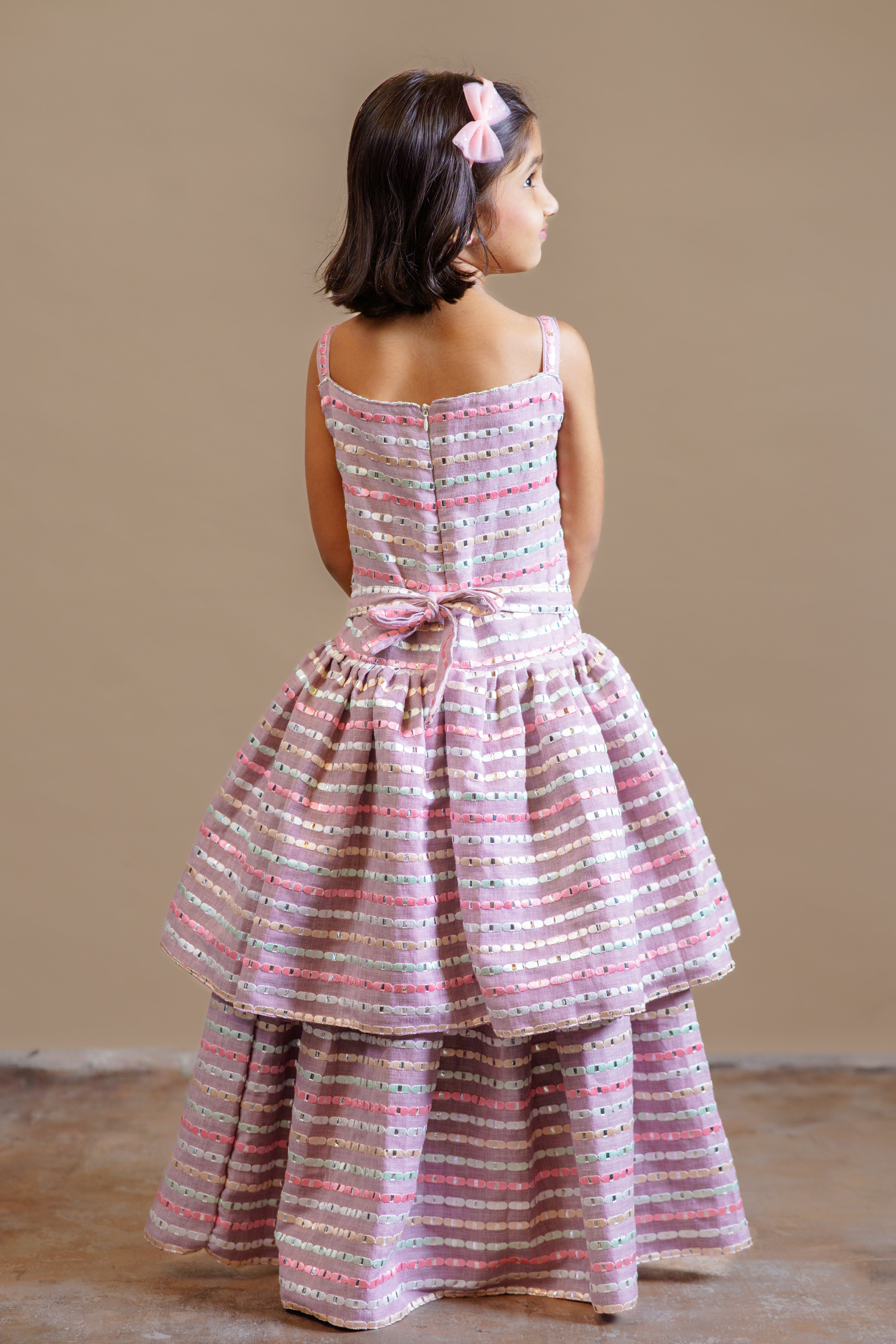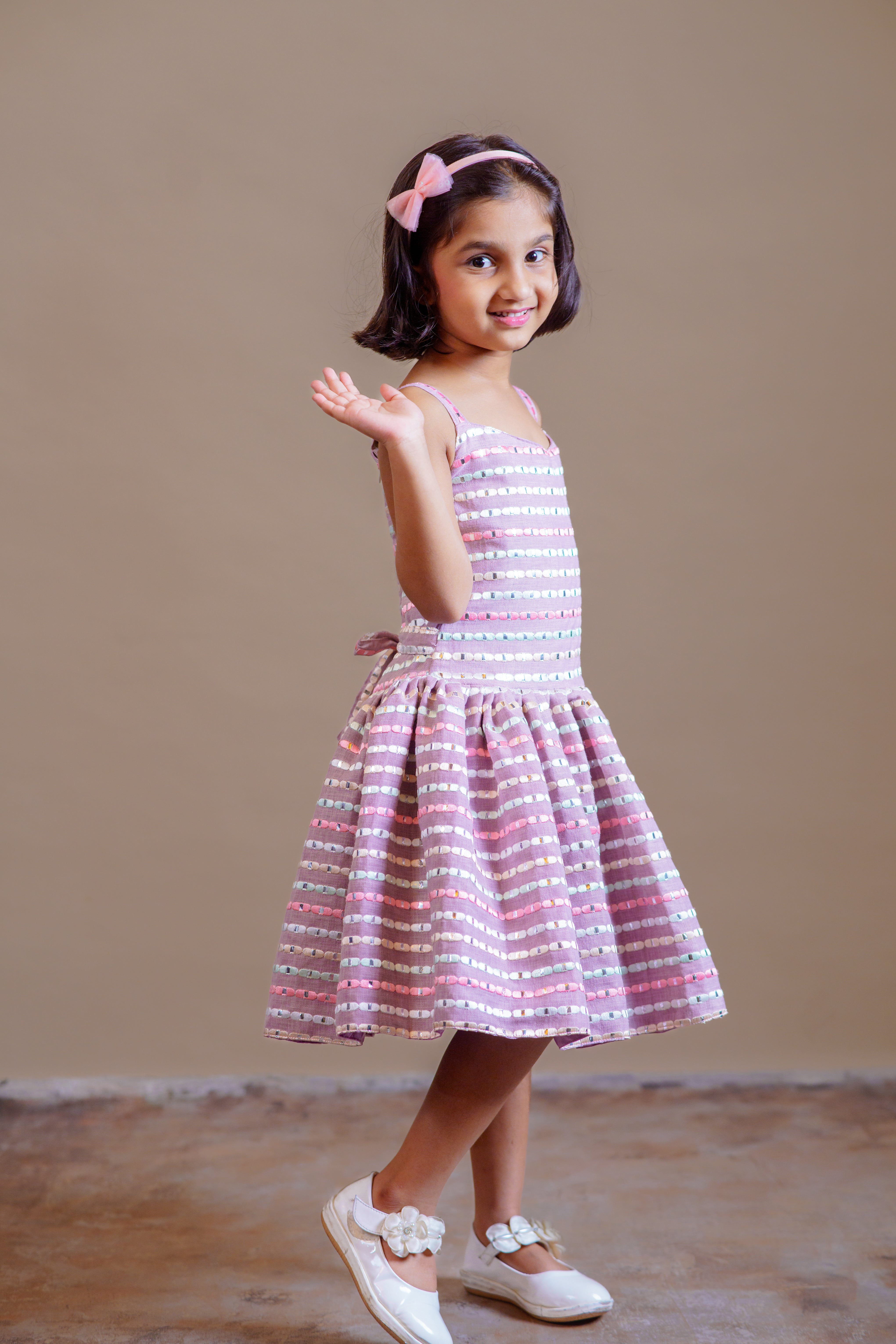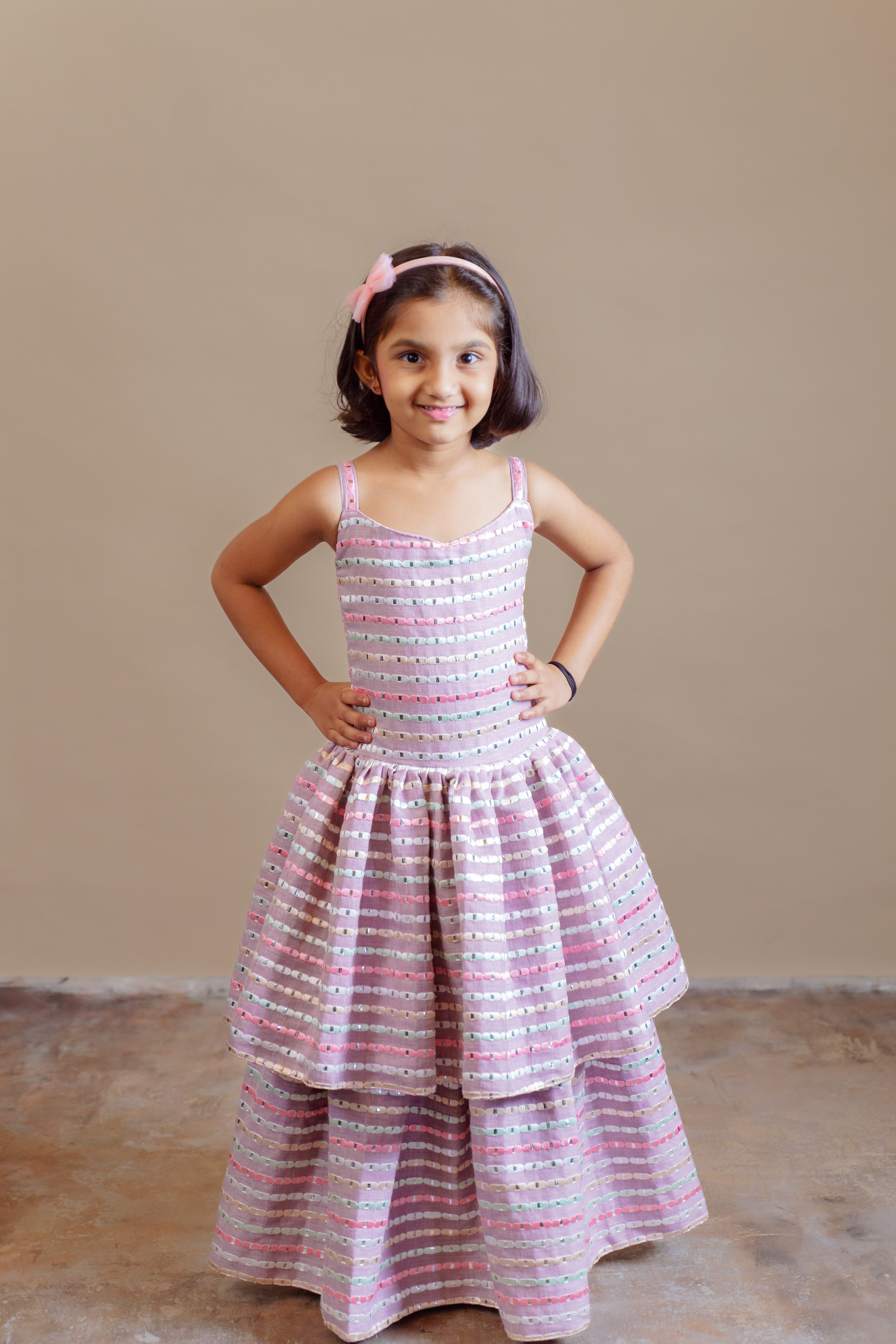 A dress that’s as playful as it is magical. Crafted in premium linen with pastel striped detailing, this two-in-one piece transforms effortlessly thanks to its detachable zip design that allows it to be worn long or short. The voluminous silhouette adds a fairytale flair, perfect for twirls, birthdays, and every little moment in between.
