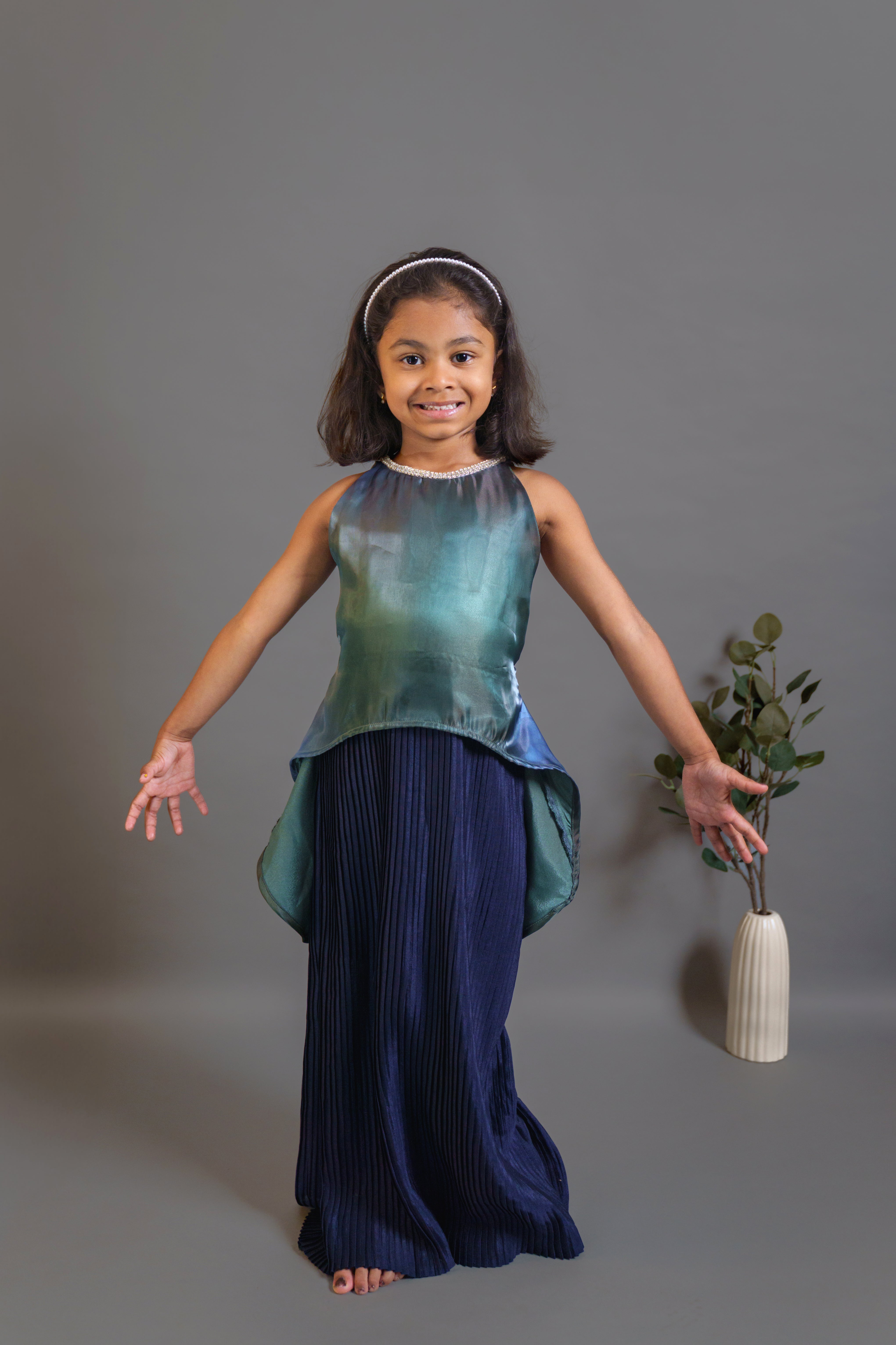 The umbrella-effect long dress is the epitome of elegance  designed to make a statement. With a stunning ombre shade that transitions gracefully, it creates a mesmerizing visual effect. Crafted from luxurious Jimmy Choo fabric, pleats and satin lining for a flawless fit, the dress is both sophisticated and comfortable. The crystal collar adds a touch of sparkle, elevating the look to pure glamour.